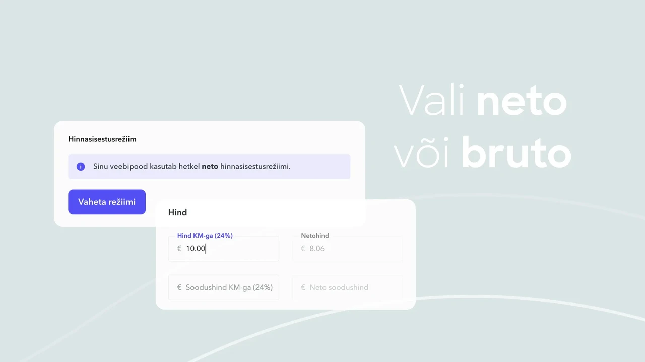 Neto- ja brutohindade valik annab sulle rohkem kontrolli poe hinnastamise üle ning aitab hoida kliendile kuvatava lõpphinna alati selge, loogilise ja läbipaistvana.